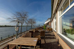 Neben unseren Räumlichkeiten steht Ihnen im Sommer auch unsere Rheinterasse zur Verfügung. Von dort aus genießen Sie zusätzlich einen traumhaften Blick auf den Rhein.